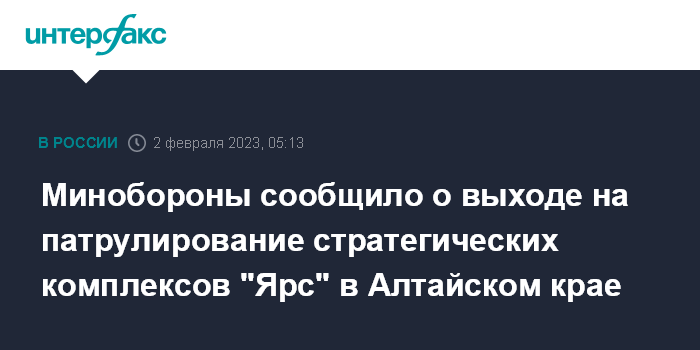Москва. 2 февраля. INTERFAX.RU - Российские военные сообщили, что в Алтайском крае на маршруты патрулирования вышли автономные пусковые установки стратегических ракетных комплексов "Ярс".