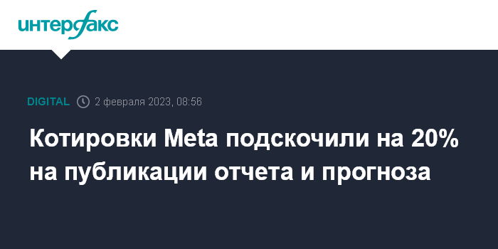 Котировки Meta подскочили на 20% на публикации отчета и прогноза