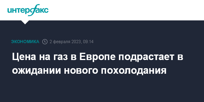 Москва. 2 февраля. INTERFAX.RU - Спотовая цена на газ в Европе движется вверх по мере пересмотра прогноза погоды на следующую неделю к более низким температурным значениям.