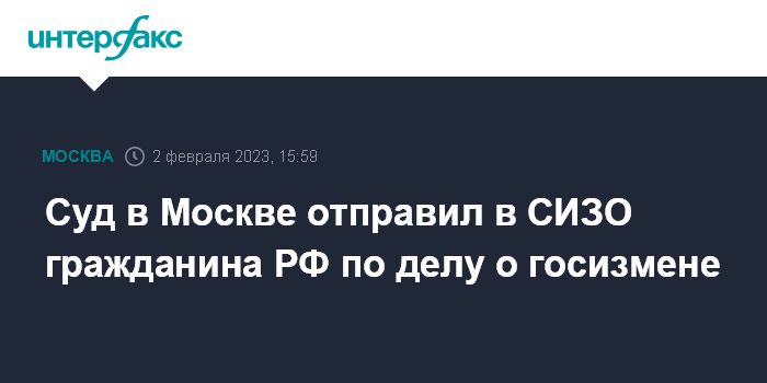 Суд в Москве отправил в СИЗО гражданина РФ по делу о госизмене