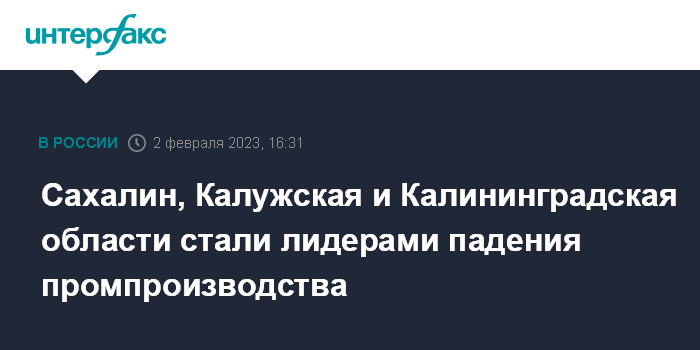 Сахалин, Калужская и Калининградская области стали лидерами падения промпроизводства