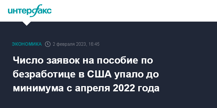 Число заявок на пособие по безработице в США упало до минимума с апреля 2022 года