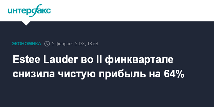 Москва. 2 февраля. INTERFAX.RU - Американский производитель косметики и парфюмерии Estee Lauder Cos во втором квартале 2023 финансового года снизила чистую прибыль на 64%, дала слабый годовой прогноз.