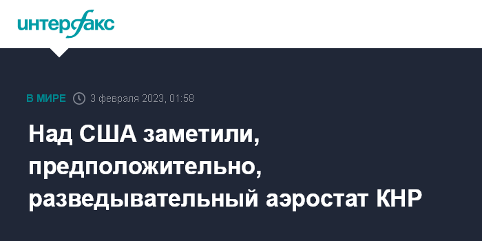 "Правительство США обнаружило и отслеживает высотный аэростат наблюдения, который прямо сейчас находится над континентальной частью Соединенных Штатов", - приводит телеканал слова Райдера.