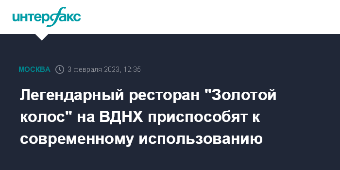 Легендарный ресторан "Золотой колос" на ВДНХ приспособят к современному использованию