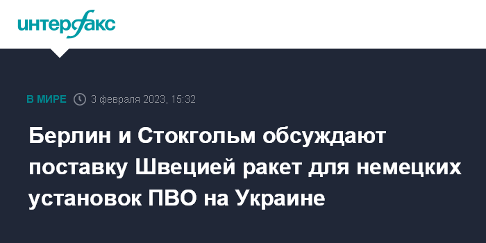 Берлин и Стокгольм обсуждают поставку Швецией ракет для немецких установок ПВО на Украине