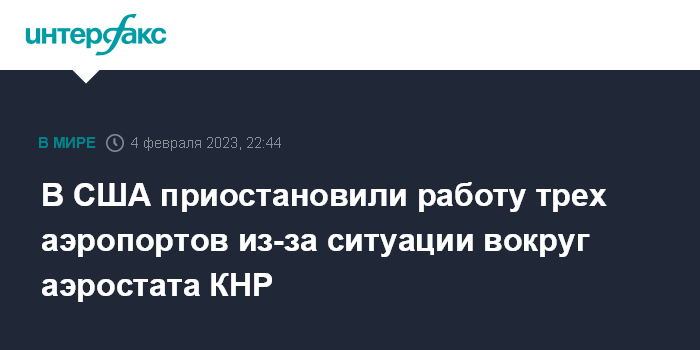 В США приостановили работу трех аэропортов из-за ситуации вокруг аэростата КНР