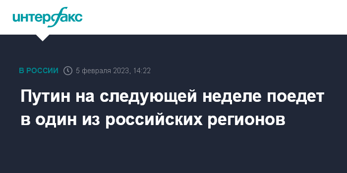 Москва. 5 февраля. INTERFAX.RU - Президент РФ Владимир Путин на следующей неделе поедет в командировку в один из российских регионов, сообщает программа "Москва.Кремль.Путин" ("Россия-1", ВГТРК).