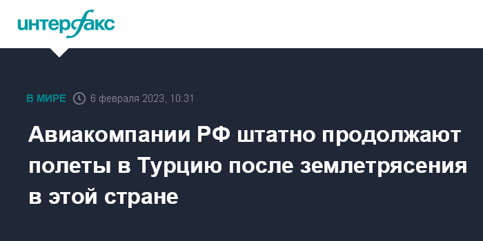 Авиакомпании РФ штатно продолжают полеты в Турцию после землетрясения в этой стране