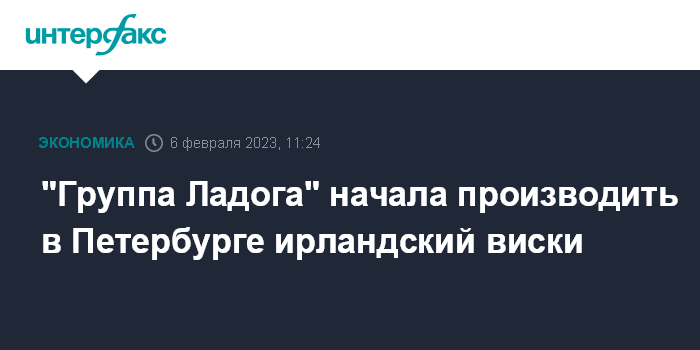 Москва. 6 февраля. INTERFAX.RU - "Группа Ладога", крупный российский производитель и дистрибьютор алкогольных напитков, начала выпуск виски из ирландского дистиллята под собственной маркой на заводе в Петербурге, сообщила пресс-служба группы.