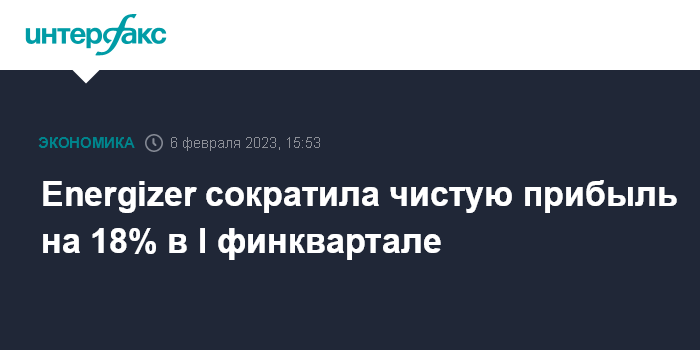 Москва. 6 февраля. INTERFAX.RU - Американский производитель батареек Energizer Holdings Inc сократил чистую прибыль и выручку в первом квартале 2023 финансового года, при этом скорректированная прибыль и выручка оказались хуже ожиданий рынка.