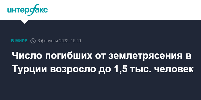 Ранее сообщалось, что в результате мощного землетрясения в Турции и Сирии погибли около 2 тыс. человек. По данным собственных источников агентства EFE, в Турции погибшими числились не менее тысячи человек, еще 785 человек погибли на территории Сирии.