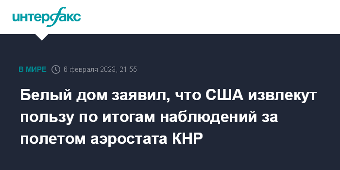 Белый дом заявил, что США извлекут пользу по итогам наблюдений за полетом аэростата КНР