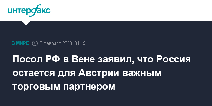 Посол РФ в Вене заявил, что Россия остается для Австрии важным торговым партнером