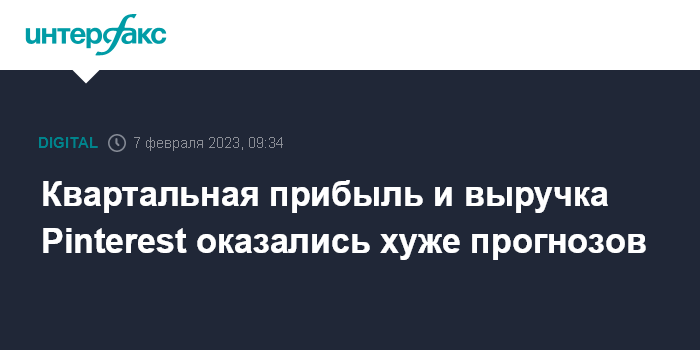 Москва. 7 февраля. INTERFAX.RU - В IV квартале 2022 года интернет-сервис визуальных закладок Pinterest Inc. получил чистую прибыль и выручку хуже ожиданий.