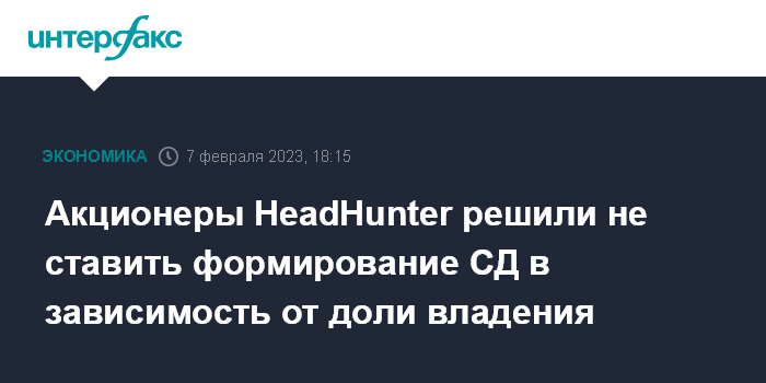 Акционеры HeadHunter решили не ставить формирование СД в зависимость от доли владения