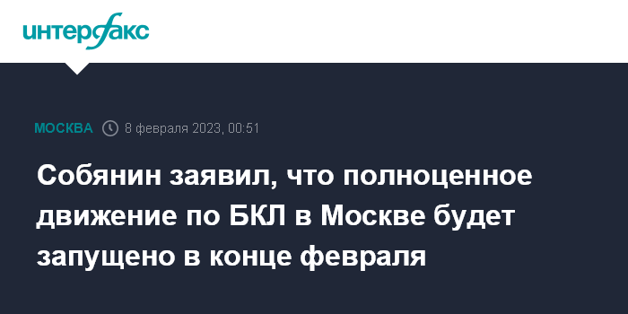 Собянин заявил, что полноценное движение по БКЛ в Москве будет запущено в конце февраля