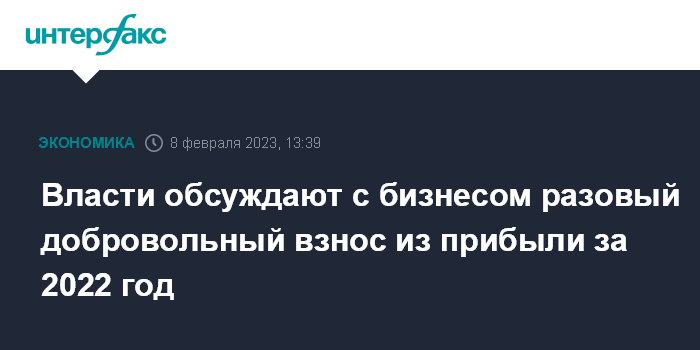 Власти обсуждают с бизнесом разовый добровольный взнос из прибыли за 2022 год