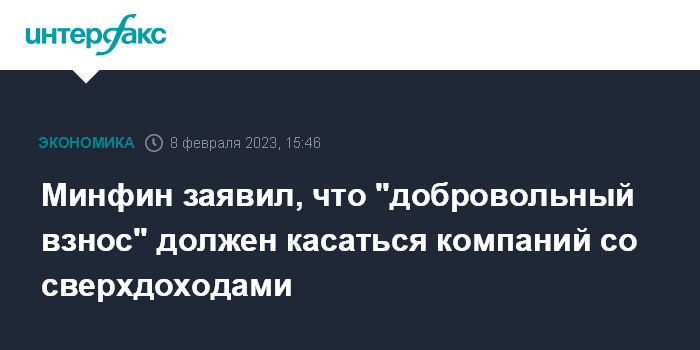Минфин заявил, что "добровольный взнос" должен касаться компаний со сверхдоходами