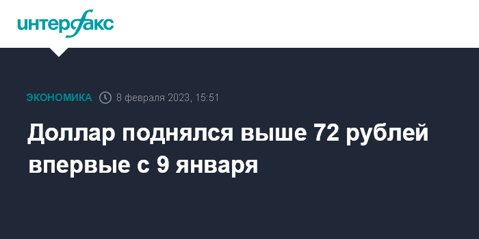 Москва. 8 февраля. INTERFAX.RU - Доллар США, евро и юань активно растут на Московской бирже в среду днем, курс доллара поднялся выше 72 рублей впервые с 9 января, евро торгуется по направлению к 78 руб., юань находится на максимальных отметках с начала мая 2022 года.