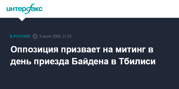 Тбилиси. 3 июля. INTERFAX.RU - Лидеры грузинской оппозиции от имени всех партий, которые принимают участие в начавшихся с 9 апреля акциях протеста, призвали население Грузии принять участие в митинге, который запланирован на день приезда в Тбилиси вице-президента США Джозефа Байдена в конце июля.