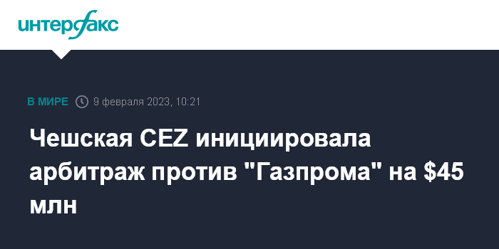 Москва. 9 февраля. INTERFAX.RU - Чешская CEZ инициировала арбитражное разбирательство в отношении ООО "Газпром экспорт" по правилам Международной торговой палаты (ICC).