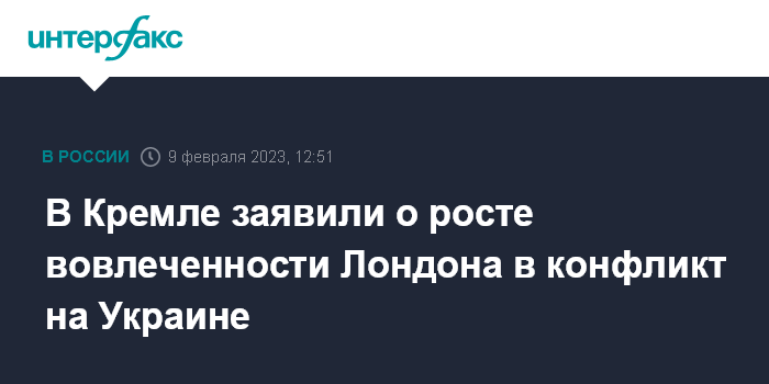 Москва. 9 февраля. INTERFAX.RU - Ситуация вокруг возможного предоставления Украине британских истребителей свидетельствует о растущей вовлеченности Лондона в конфликт между Москвой и Киевом, заявил пресс-секретарь президента РФ Дмитрий Песков.
