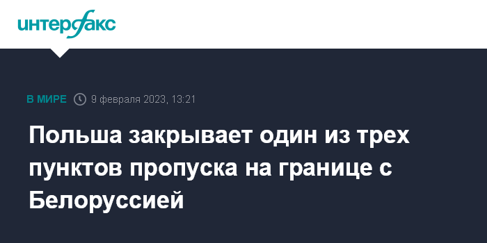 "В связи с интересами государственной безопасности я решил приостановить до дальнейшего решения с 10 февраля с 12:00 (14:00 мск - ИФ) движение на польско-белорусском пограничном переходе в Бобровниках", - написал глава МВД Польши в четверг в твиттере.