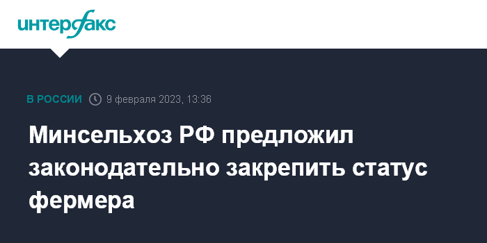 Москва. 9 февраля. INTERFAX.RU - Минсельхоз РФ предлагает устранить путаницу в организационно-правовой форме фермерских хозяйств и уже в 2023 году законодательно закрепить статус фермера, сообщил замминистра сельского хозяйства Иван Лебедев.