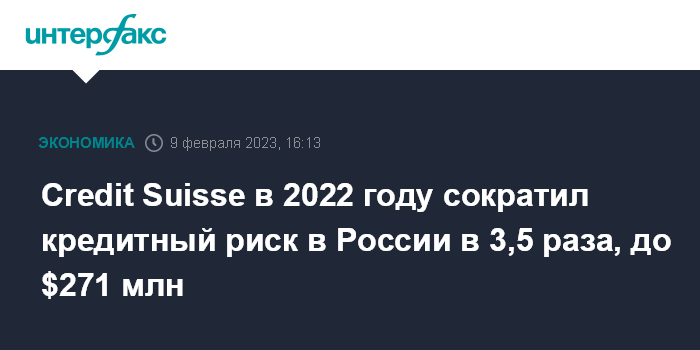 Credit Suisse в 2022 году сократил кредитный риск в России в 3,5 раза, до $271 млн