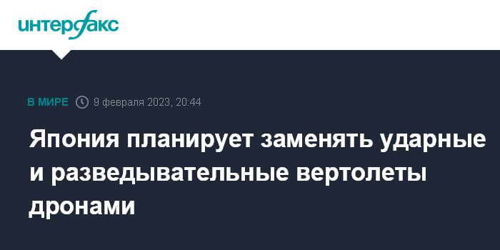 Москва. 9 февраля. INTERFAX.RU - Япония намерена замещать устаревающие ударные и разведывательные вертолеты беспилотниками, сообщает в четверг Defense news со ссылкой на документ японского Минобороны.