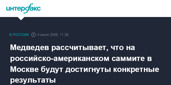 Медведев рассчитывает, что на российско-американском саммите в Москве будут достигнуты конкретные результаты