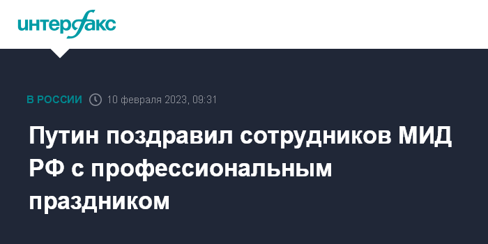 Путин поздравил сотрудников МИД РФ с профессиональным праздником