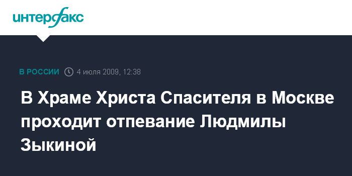 Москва. 4 июля. INTERFAX.RU - В Храме Христа Спасителя в Москве началось отпевание народной артистки СССР Людмилы Зыкиной.