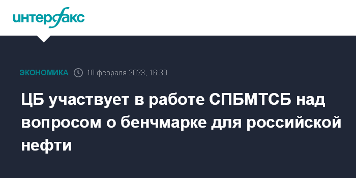 Москва. 10 февраля. INTERFAX.RU - Вопрос о бенчмарке для российской нефти стоит очень остро, над ним работает Санкт-Петербургская международная товарно-сырьевая биржа (СПБМТСБ), Банк России также участвует в этой работе, заявила на брифинге глава ЦБ Эльвира Набиуллина.