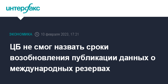 ЦБ не смог назвать сроки возобновления публикации данных о международных резервах