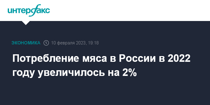 Москва. 10 февраля. INTERFAX.RU - В России в 2022 году потребление мяса выросло почти на 2% и приблизилось к 79 кг на человека, средние оптовые и розничные цены снижаются, заявил "Интерфаксу" руководитель Национальной мясной ассоциации (НМА) Сергей Юшин.