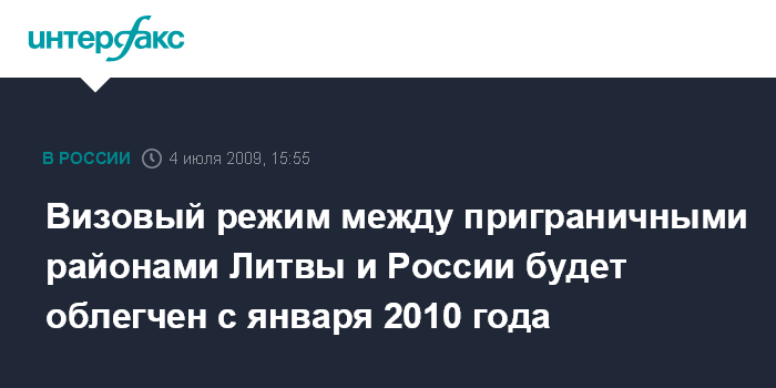 Визовый режим между приграничными районами Литвы и России будет облегчен с января 2010 года