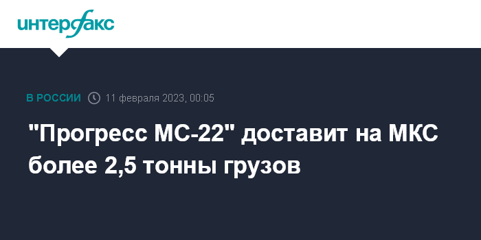 "Прогресс МС-22" доставит на МКС более 2,5 тонны грузов