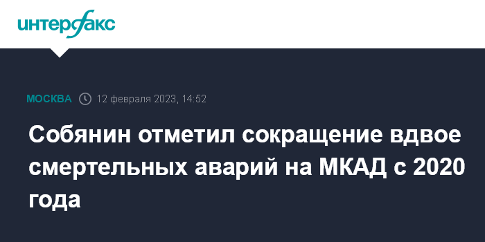 Москва. 12 февраля. INTERFAX.RU - За три года число смертельных дорожно-транспортных происшествий на МКАД сократилось вдвое, сообщил мэр Москвы Сергей Собянин.