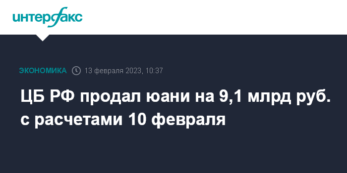 ЦБ РФ продал юани на 9,1 млрд руб. с расчетами 10 февраля