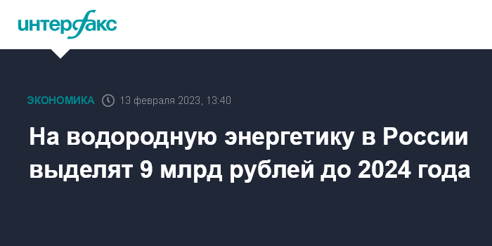 Москва. 13 февраля. INTERFAX.RU - Федеральный бюджет предусматривает инвестиции в размере 9,3 млрд рублей на период до 2024 года на развитие водородной энергетики. Об этом сообщил вице-премьер РФ Александр Новак в статье журнала "Энергетическая политика".