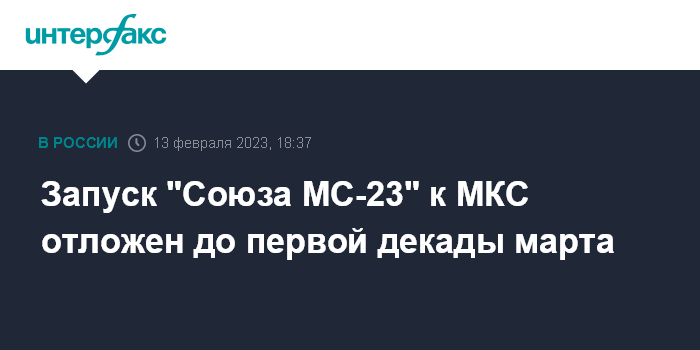 Ранее сообщалось, что запуск корабля "Союз МС-23" ракетой-носителем "Союз-2.1а" с Байконура мог состояться 20 февраля, стыковка с МКС намечалась на 22 февраля. Предполагалось, что этот корабль заменит на станции "Союз МС-22" с поврежденным радиатором. Осенью на нем на Землю должен вернуться российско-американский экипаж поврежденного корабля "Союз МС-22" - космонавты "Роскосмоса" Сергей Прокопьев, Дмитрий Петелин и астронавт NASA Франциско Рубио.
