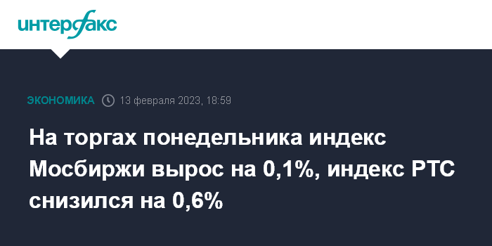 Москва. 13 февраля. INTERFAX.RU - Торги на российском рынке акций начали неделю с консолидации при смешанной динамике blue chips на фоне разнополярных сигналов с внешних фондовых и нефтяных площадок, известий о новых антироссийских санкционных действиях Запада, а также налоговых инициатив правительства для нефтяников.
