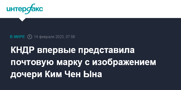 Москва. 14 февраля. INTERFAX.RU - КНДР во вторник впервые представила дизайн новых почтовых марок с изображением дочери северокорейского лидера Ким Чен Ына, известной как Чу Э, сообщает южнокорейское агентство "Ренхап".