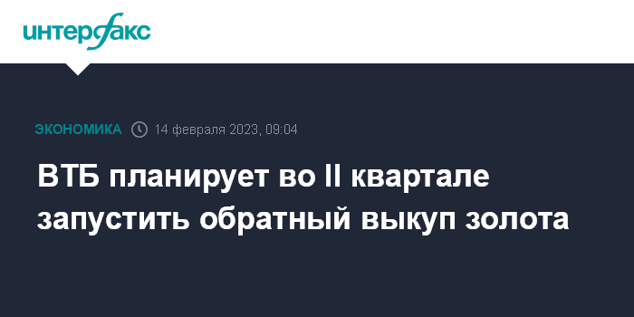 Москва. 14 февраля. INTERFAX.RU - ВТБ планирует во II квартале 2023 года запустить сервис по обратному выкупу физического золота, сообщил банк.