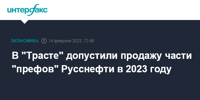 В "Трасте" допустили продажу части "префов" Русснефти в 2023 году