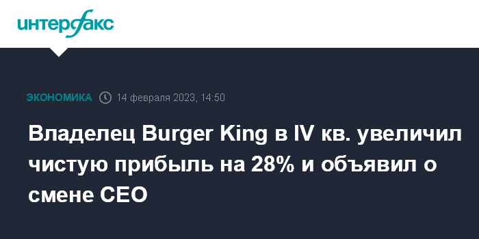 Владелец Burger King в IV кв. увеличил чистую прибыль на 28% и объявил о смене CEO