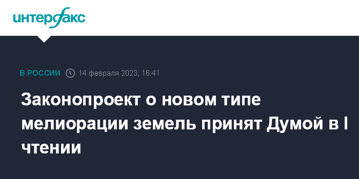 Законопроект о новом типе мелиорации земель принят Думой в I чтении