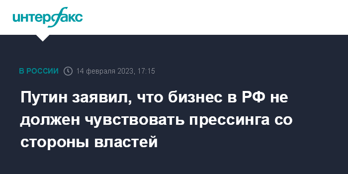 Путин заявил, что бизнес в РФ не должен чувствовать прессинга со стороны властей